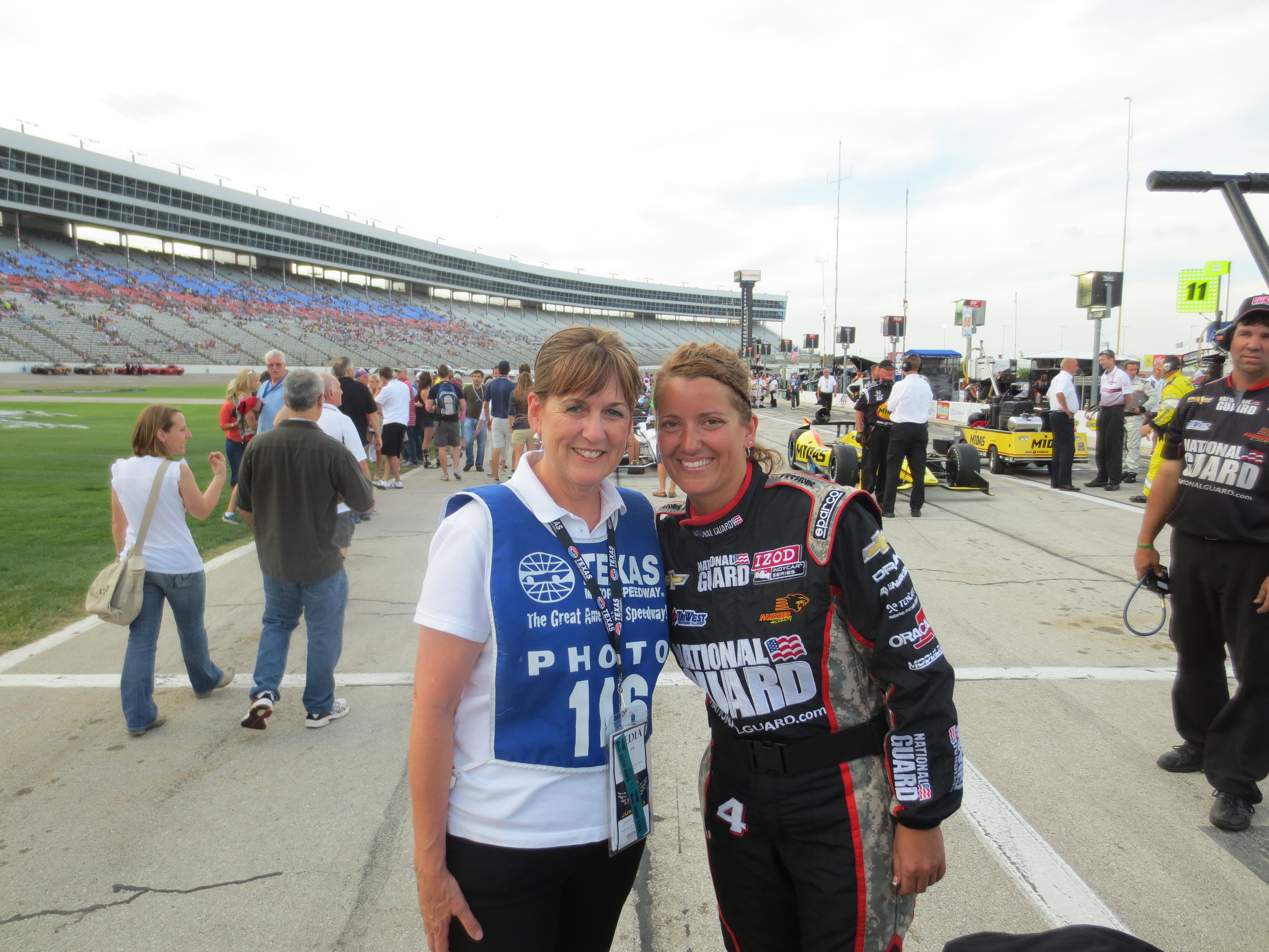 I was in my element again in June. The NASCAR Camping World Truck Series and the IZOD Indycars were at Texas Motor Speedway for a three day weekend. I couldn’t think of a more fun way for this sports addict to spend my birthday! The first day was the truck practice and qualifying. Wedged in between were the driver press conferences which are always an enlightening experience — some of those kids decked out in their spandex suits could be my grandchildren!! Two of the drivers we interviewed also were celebrating their