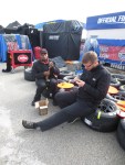 Saturday morning found me killing time before Sprint Cup qualifying with a visit to the tire change display. I was determined to better last year’s fifty-eight seconds combat with the lug nut installer. There I was in line with guys, some who worked at car shops for a living. There was a lot at stake –winning automotive gadgets as well as bragging rights. I was in it for the latter. My first attempt was over thirteen seconds as I had to coax my fingers into grasping the lug nut. Remember, I was still recovering from my accident in November. Back into the line I went and my second attempt was ten and fifty-two hundredths seconds. I even beat a couple of guys in line with me. Unlike the horse races, I quit while I was ahead. Later was Sprint Cup qualifying amid a light shower so I got to see the drivers substitute their helmets with umbrellas as the jet-dryers dehydrated the track. There wasn’t a race because of the Final Four in college basketball being that evening.