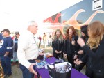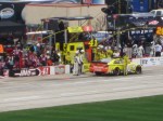 Before I knew it, race weekend was here. Thursday was the arrival of the Nationwide haulers. It was like seeing a little city develop as we peered through the wrought iron fences surrounding the garage area. Hauler drivers like my friend Eloy Trevino were busy setting up barbeque grills because many also serve as cooks for the teams. This activity was short-lived since it was soon time for my one-on-one with Nationwide driver Brendan Gaughan (see exclusive column) and then practice. Thank goodness everyone’s name was scribed over the driver’s window as there were so many changes from last year’s crop. On the way out, I signed the tunnel between the pit and the stands. My legacy joined thousands of others on the grooved wall and left me wondering if, on a return trip, I’d ever find where I had signed.