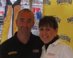 The first time I met Brendan Gaughan was June 2013 when he was in the NASCAR Camping World Truck Series in Texas. It was my first truck series to cover and a press conference was held with him and Joey Coulter, fifteen years his junior. When I asked him what was considered as “old” in truck racing, he grinned and replied, “Me!” To me, mature drivers were more reliable and less apt to do something dumb “to make something happen.” I knew I had found “my” driver. Brendan did well during the race until he spun his tires on the last re-start and settled for 5th place. Our paths crossed again last November when NASCAR was back in North Texas. I was at Brendan’s truck and an inspector was clarifying to me that what I thought was the engine was actually the carburetor. I heard a snicker and turned to find Brendan standing there. Wanting to overshadow my naivety of car parts and knowing he had played basketball at Georgetown, I switched subjects to the hoops. I was defeated there also when Gaughan reminded me about how his Hoyas had taken the “slama” out of my Houston Cougars “jama” in the National Championship in 1984. He did very well in the race with a fourth place finish and ended the season in seventh place for the truck standings. For the year he had thirteen top ten finishes with ten of those in the top five.
