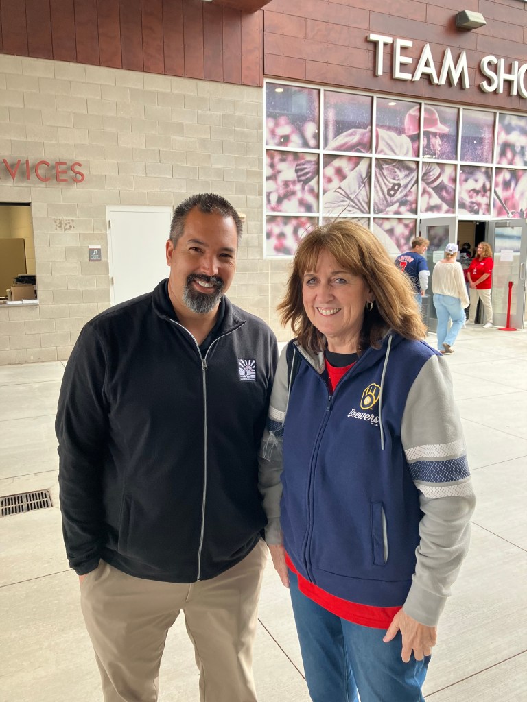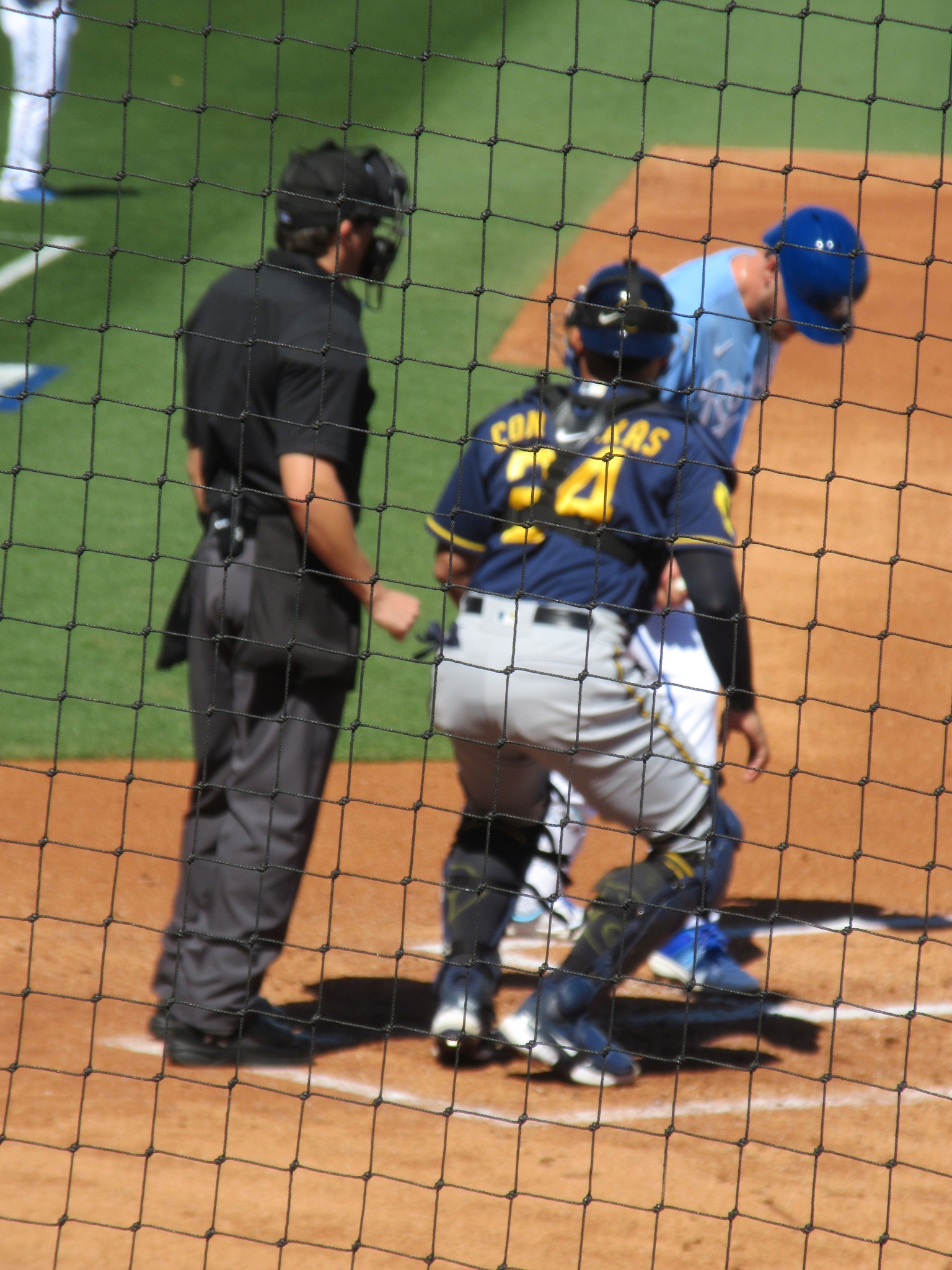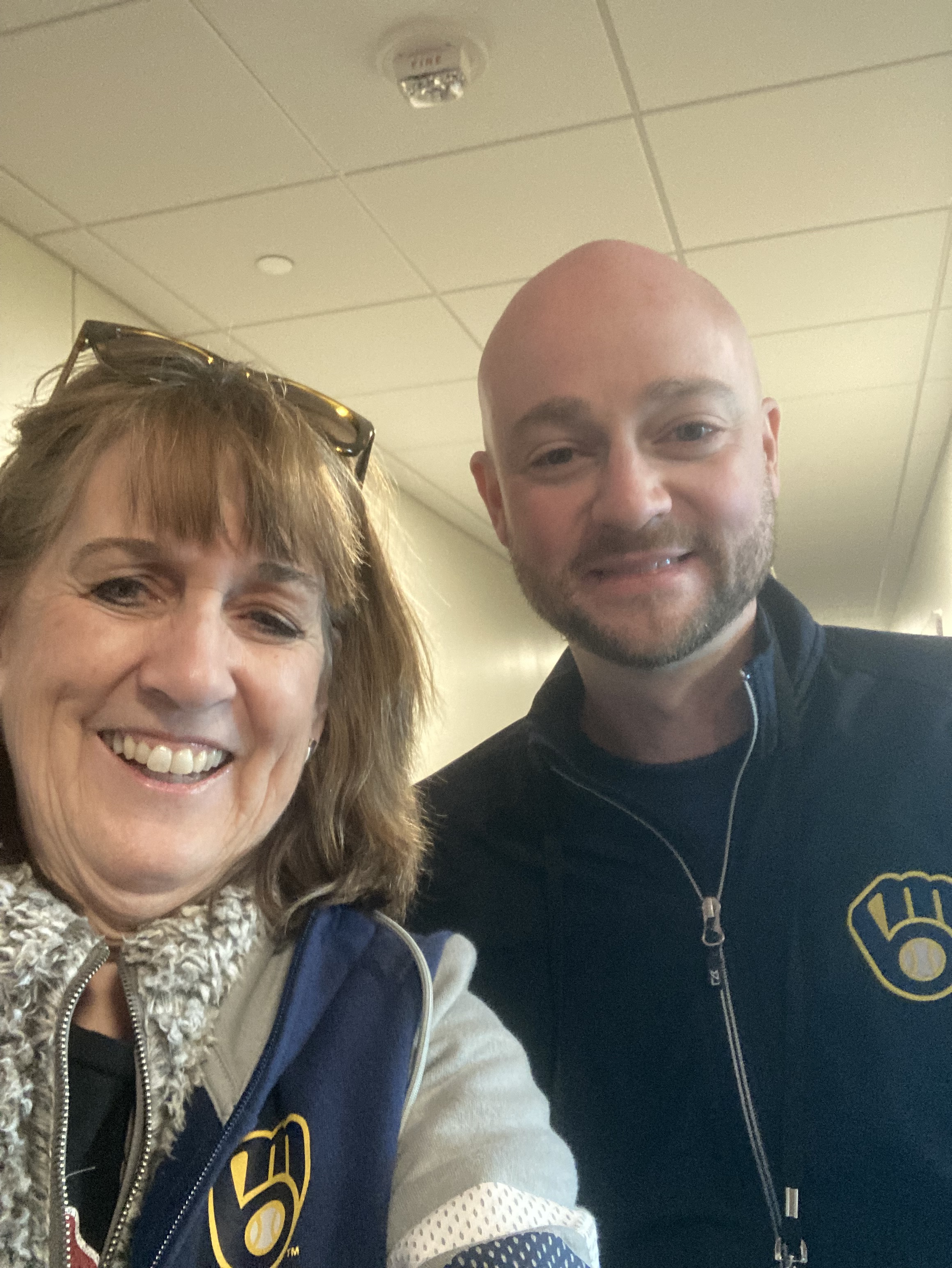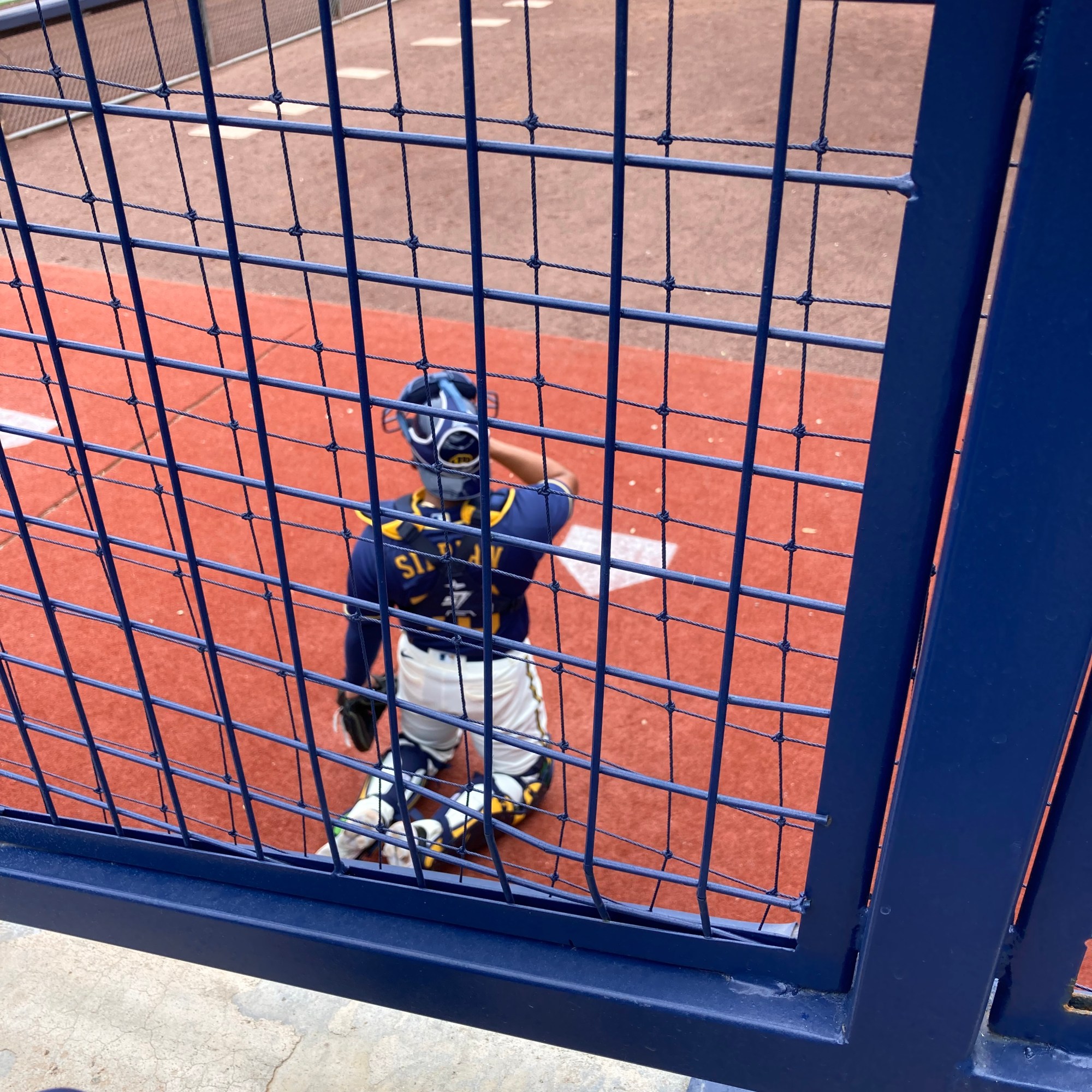 It was a return to Spring Training in March when the weather was supposed to be nicer. Minor leaguers were vying for promotions and most importantly, a celebration of our friend Michele Vassalotti’s performance in the World Baseball Classic was in the making. By taking a flight at oh-dark-thirty and thanks to gaining three hours on a time change, we were at the Brewers complex by mid-morning. Skies were very overcast and according to my weather app, rain was in the forecast. We peeked into the batting cages, then watched players at the practice fields stretching. We finally spotted a familiar frame briskly walking towards us. It was Vassalotti. “I’m pitching in the big field this morning! Come see me!” and off he sauntered. I looked at my watch. We were good for an hour and a half before we needed to head to Goodyear Park for the afternoon game. Within minutes, we were seated with scouts and some family members watching a closed scrimmage of the Brewers. After Michele’s successful inning, we left.