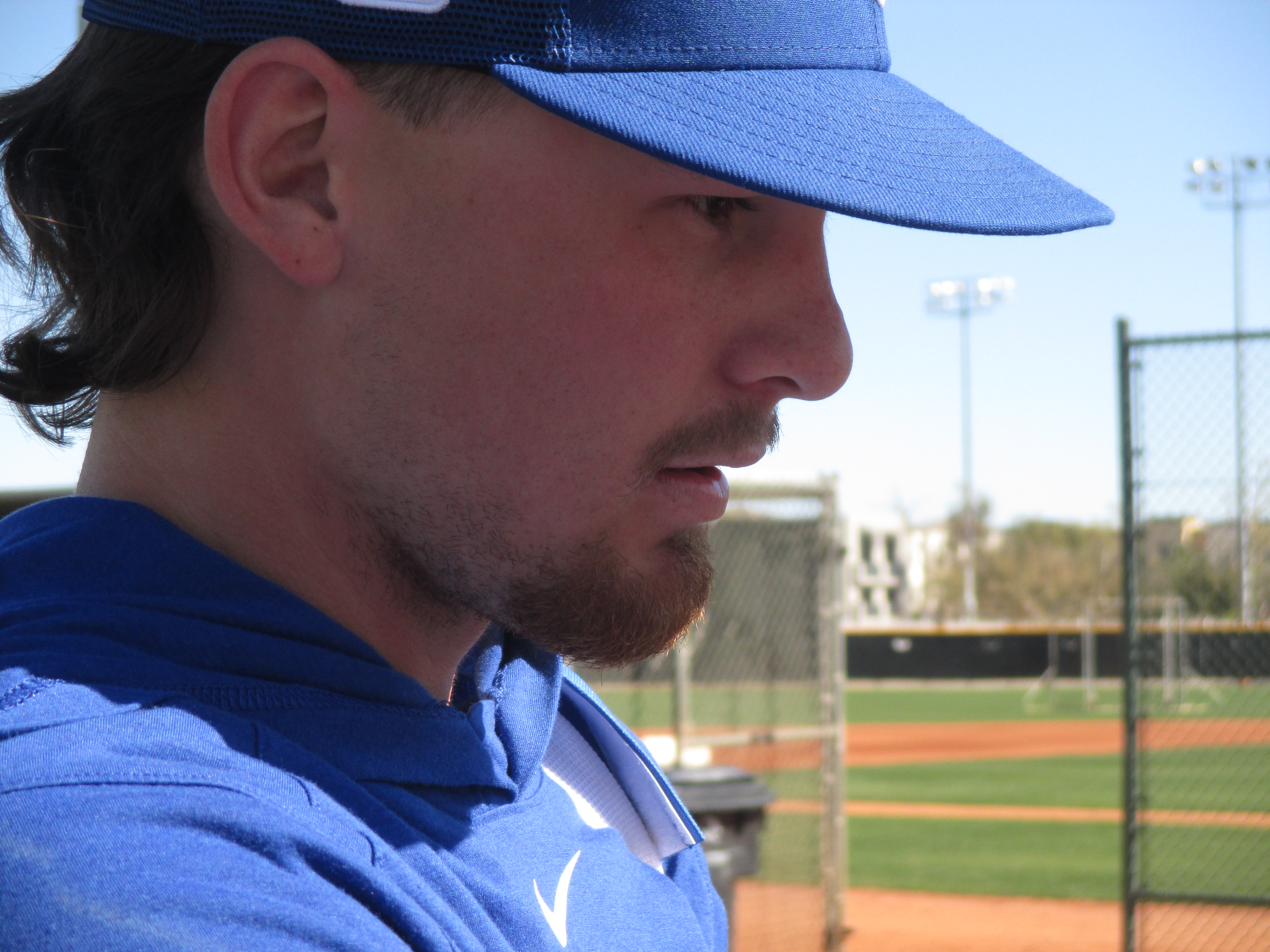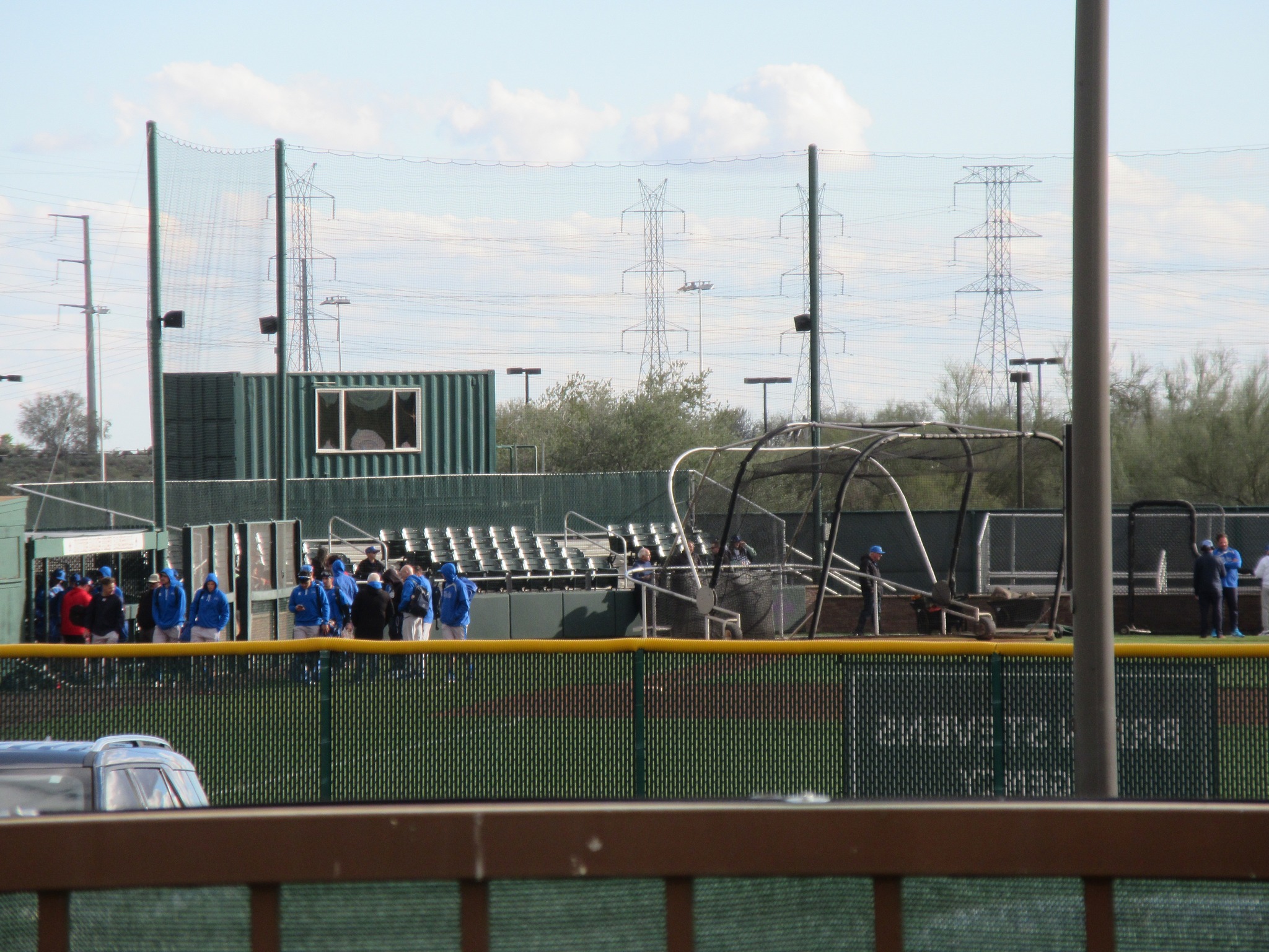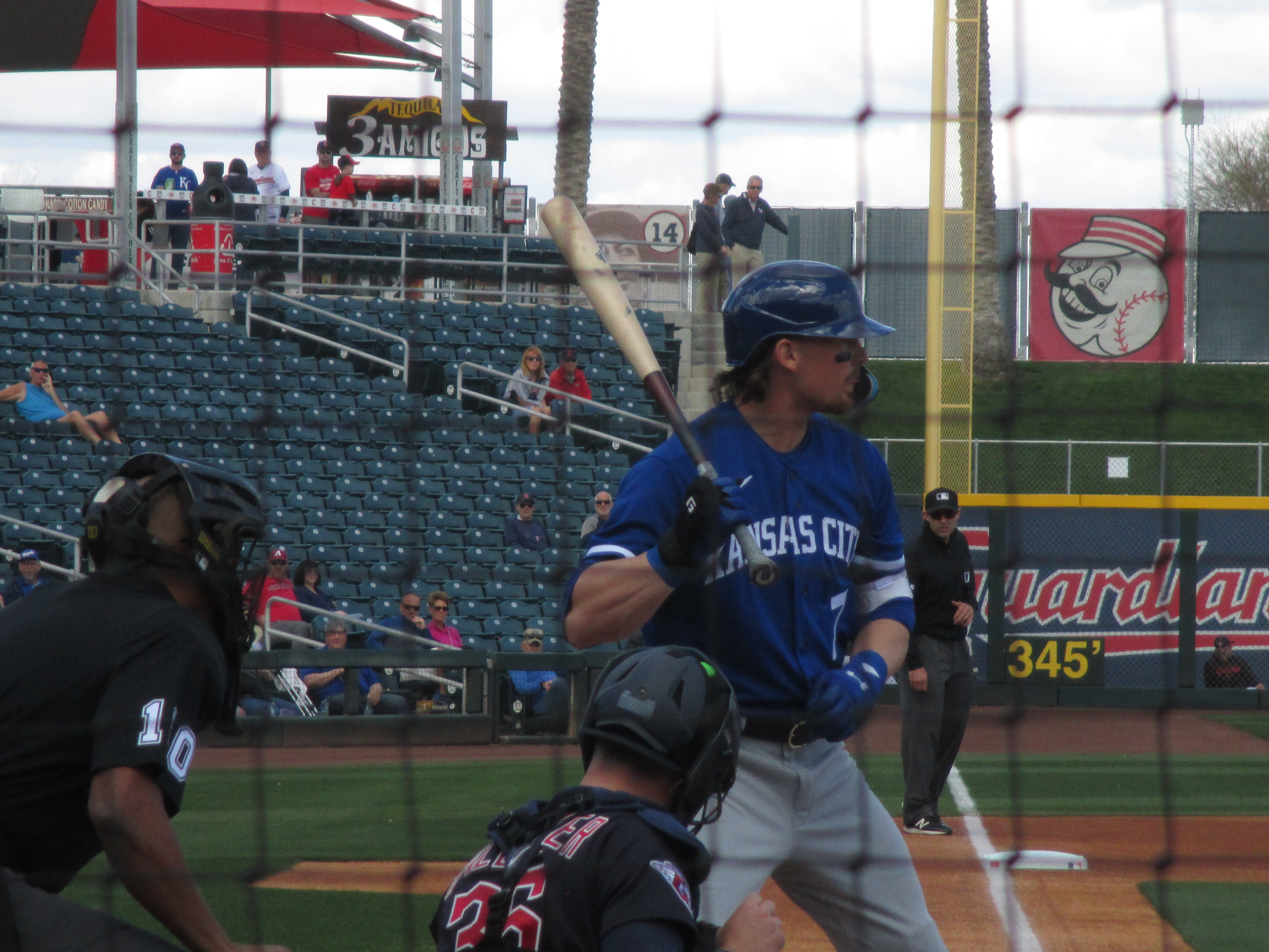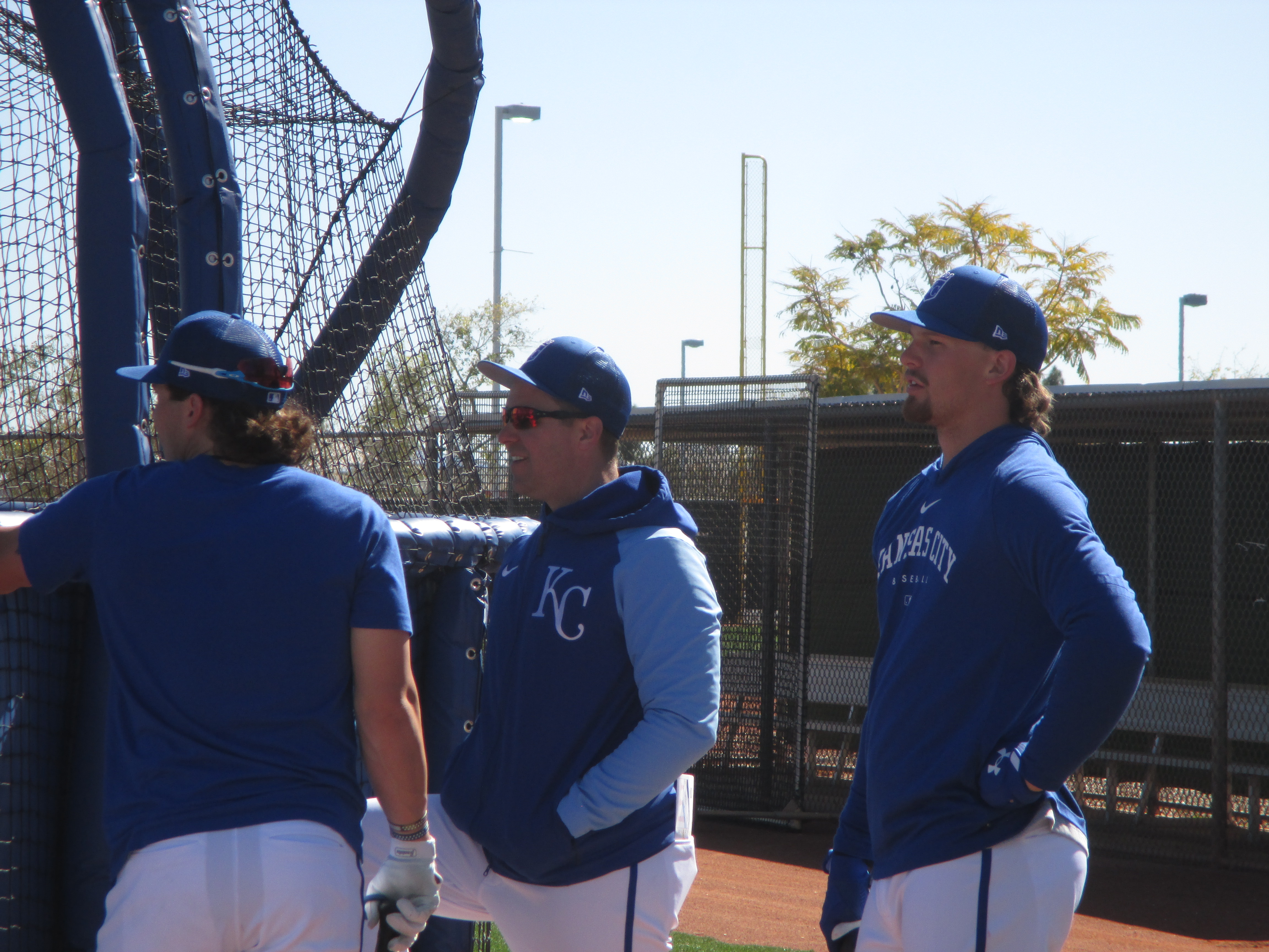 The following morning Michele posted that his “Nonna” (grandmother on his mother’s side) had passed away. Sadness filled my heart for him since he was thousands of miles away from home and unable to grieve with his family in Venezuela. Rick and I headed out to Surprise where the Kansas City Royals were hosting the Milwaukee Brewers. We had a little time to kill before the game started so we headed over to the practice fields where I was hoping to see Bobby Witt Jr. in batting practice. We were very lucky that we met a guy named Gerald and his dad who were regulars at all the Royals spring training games. They showed us exactly where the KC practice fields were. When we got over there, I still wasn’t seeing any of the players that I wanted to see namely Bobby Witt Jr. so went up to a guy who looked like he knew what was going on. It turned out he really did know – he was J.J. Picollo, Executive Vice President and General Manager of the Royals! I introduced myself and did a capsule version of how I knew Witt, Jr’s dad from when I worked the Texas Ranger charters when I was with Delta. JJ didn’t think Bobby Sr. was at spring training yet. About that time, Gerald ran up and said, “Bobby Witt Jr. is taking BP (batting practice) over there!”