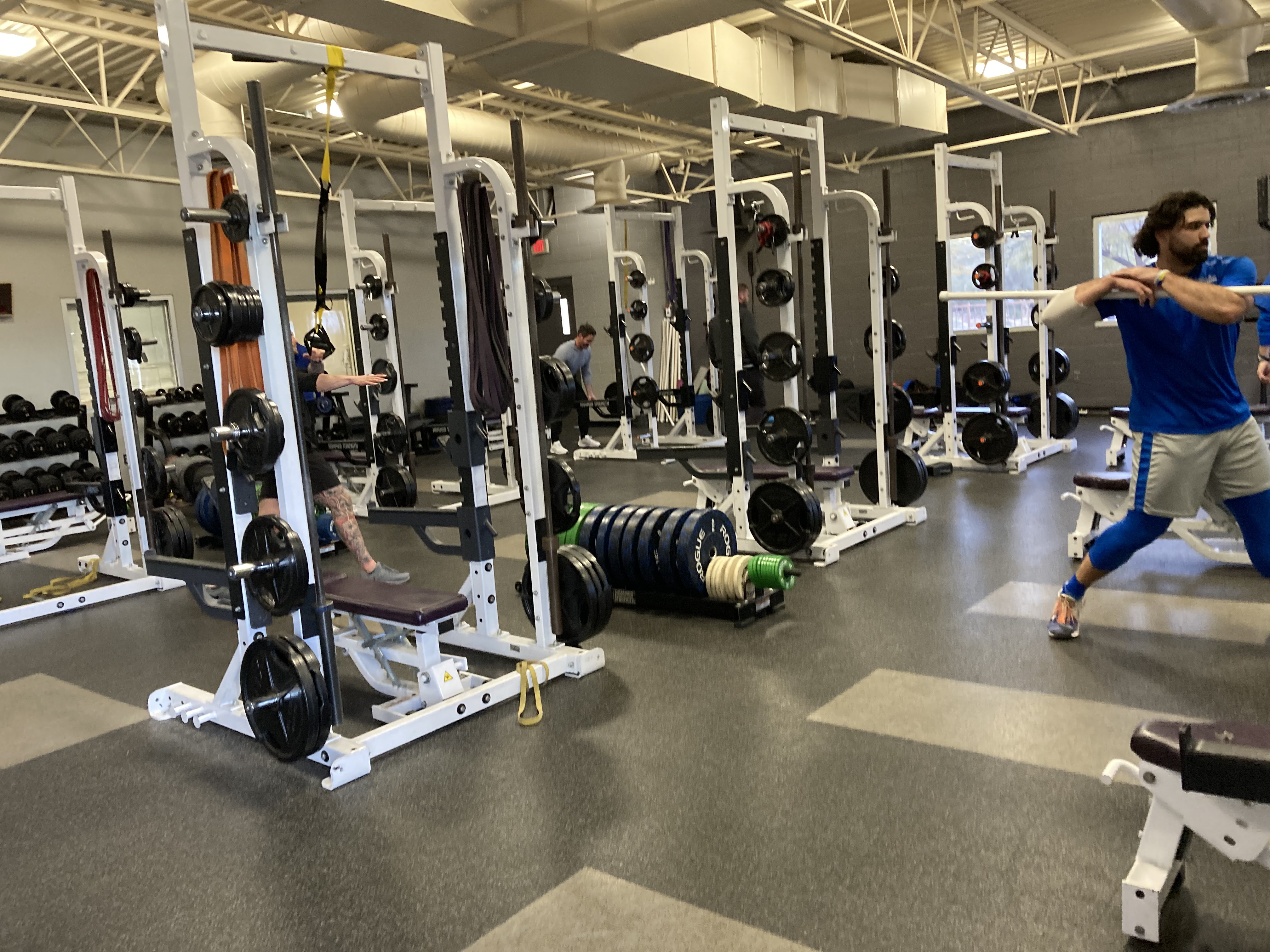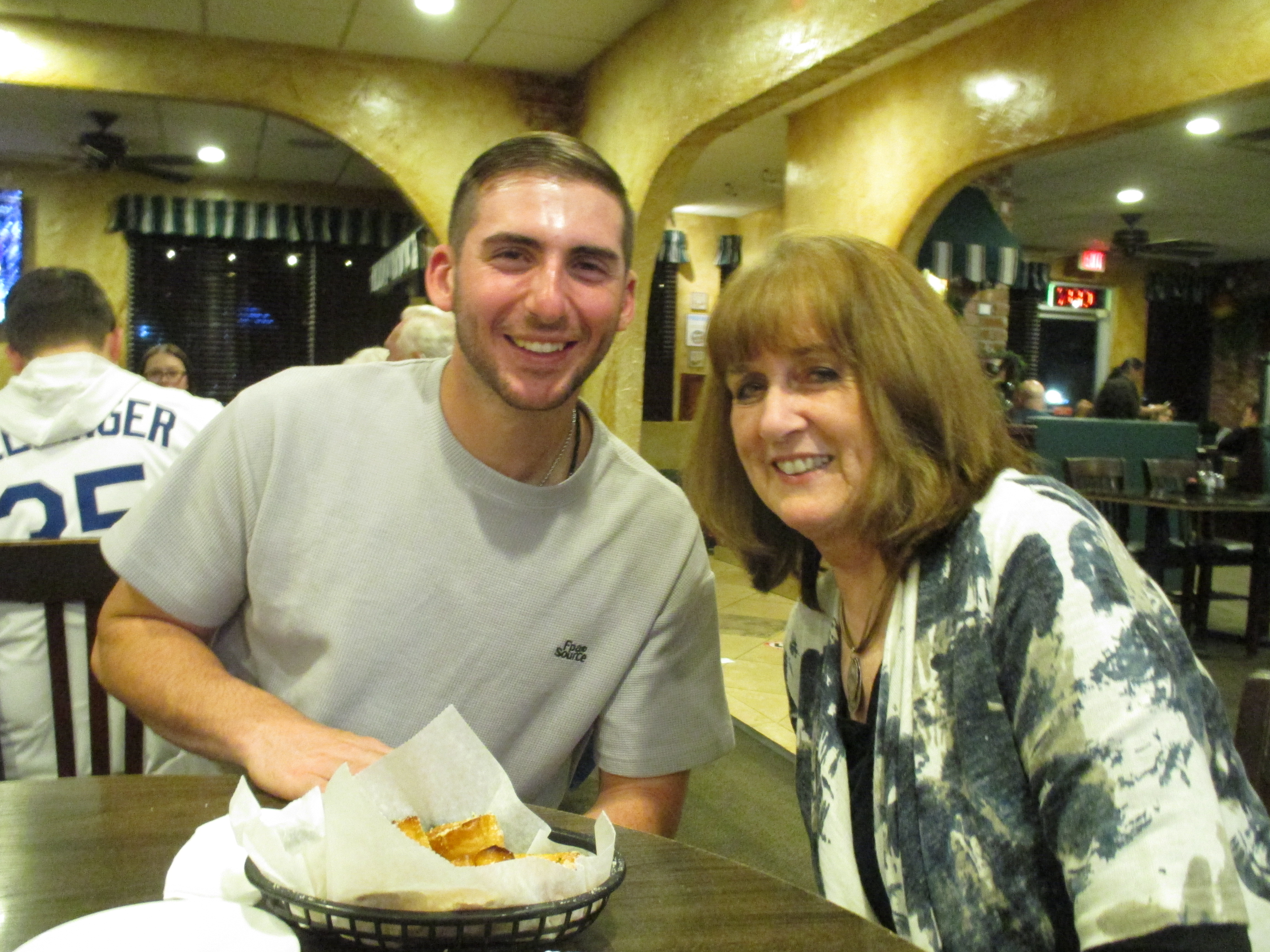 When we arrived at Notre Dame Prep Academy, we saw a handful of fans watching several players taking batting practice. As we walked towards the practice field, we came upon a security guard near first base. I explained we were there to see a particular player who was a pitcher and he asked if we were family. I laughed and I answered, “Kind of… Michele refers to us as his U.S. family.” He escorted us to a building across the parking lot. Inside were several players in a weight room while trainers monitored their workout. A weight trainer named Simone came over so I explained why we were there. Michele smiled and waved when he saw us quietly observing from the corner of the room. Christian Scafidi, one of the most accomplished pitchers at Penn and a grad transfer to Notre Dame, introduced himself to us. When he told me he was a free agent pitcher, I suggested he contact the Boston Red Sox. “We need all the help we can get!” He laughed and wiped his forehead, then went back to a machine. I was exhausted just watching the different drills and wished my pounds would be affected by just viewing.