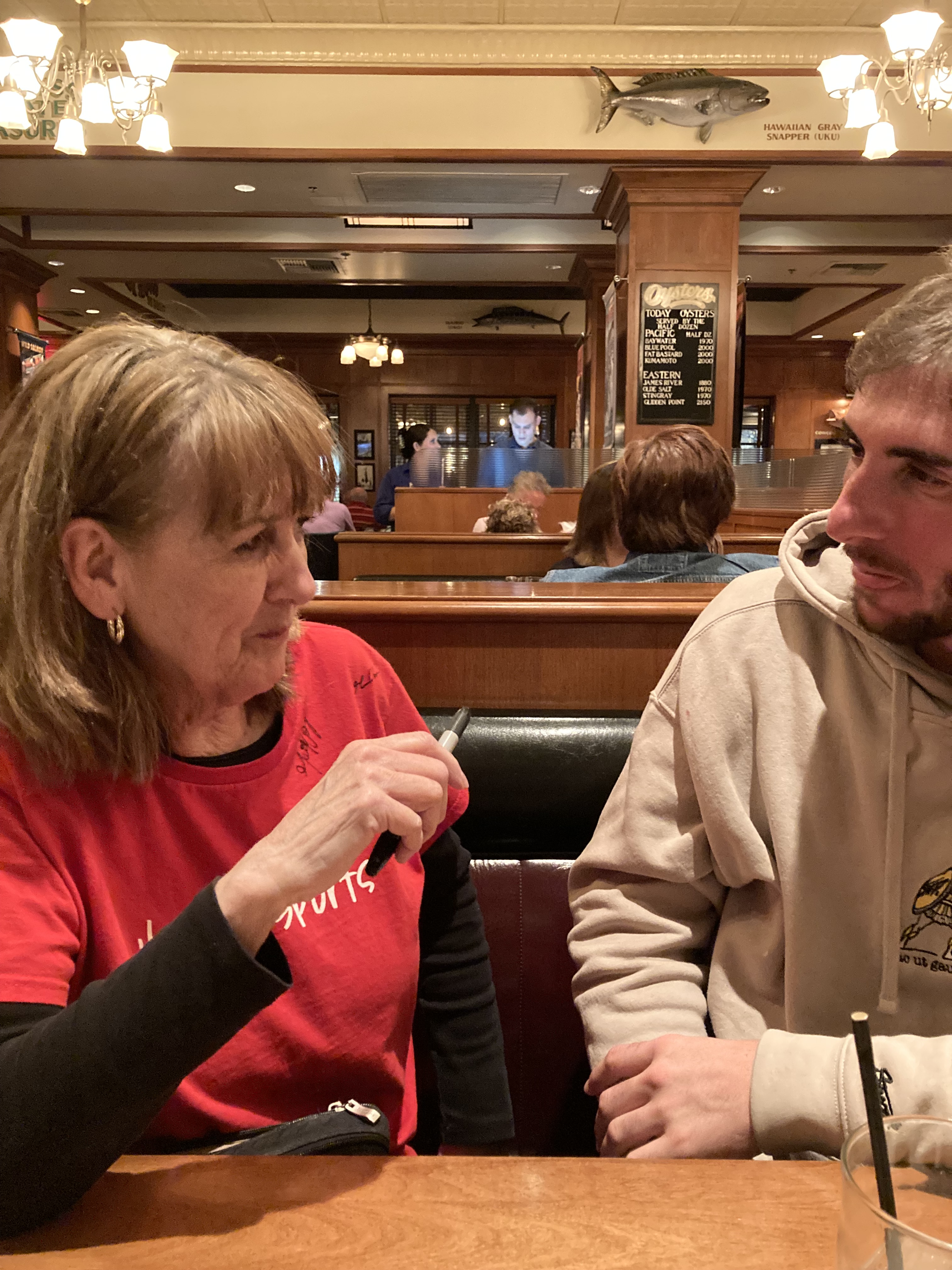 Rick motioned towards the people dining at the table adjacent to us and the reminiscing ended when I burst into laughter. It was the group who were in the row in front of us at the rainy game earlier in the day. Seated right behind Michele was the umbrella culprit! We took it as a sign to end our evening!