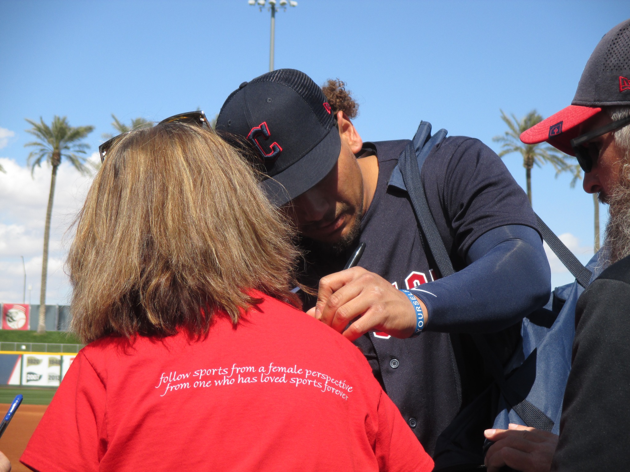 We headed back to Tempe to meet up with Michele for dinner. We had asked him what kind of foods he liked and he responded anything but Thai. He loved sushi so Rick found a seafood restaurant in Tempe that had several sushi dishes. Michele was amazing with the chopsticks! We had a real nice dinner and we discovered our waiter had played baseball. I think he told us it was in high school but he got injured pitching so he didn’t get to play after that. After dinner, I asked Michele to sign my T-shirt. “It’s all Cleveland players!” “Well, I just started it! They’ll be more!” We both laughed and he signed it.