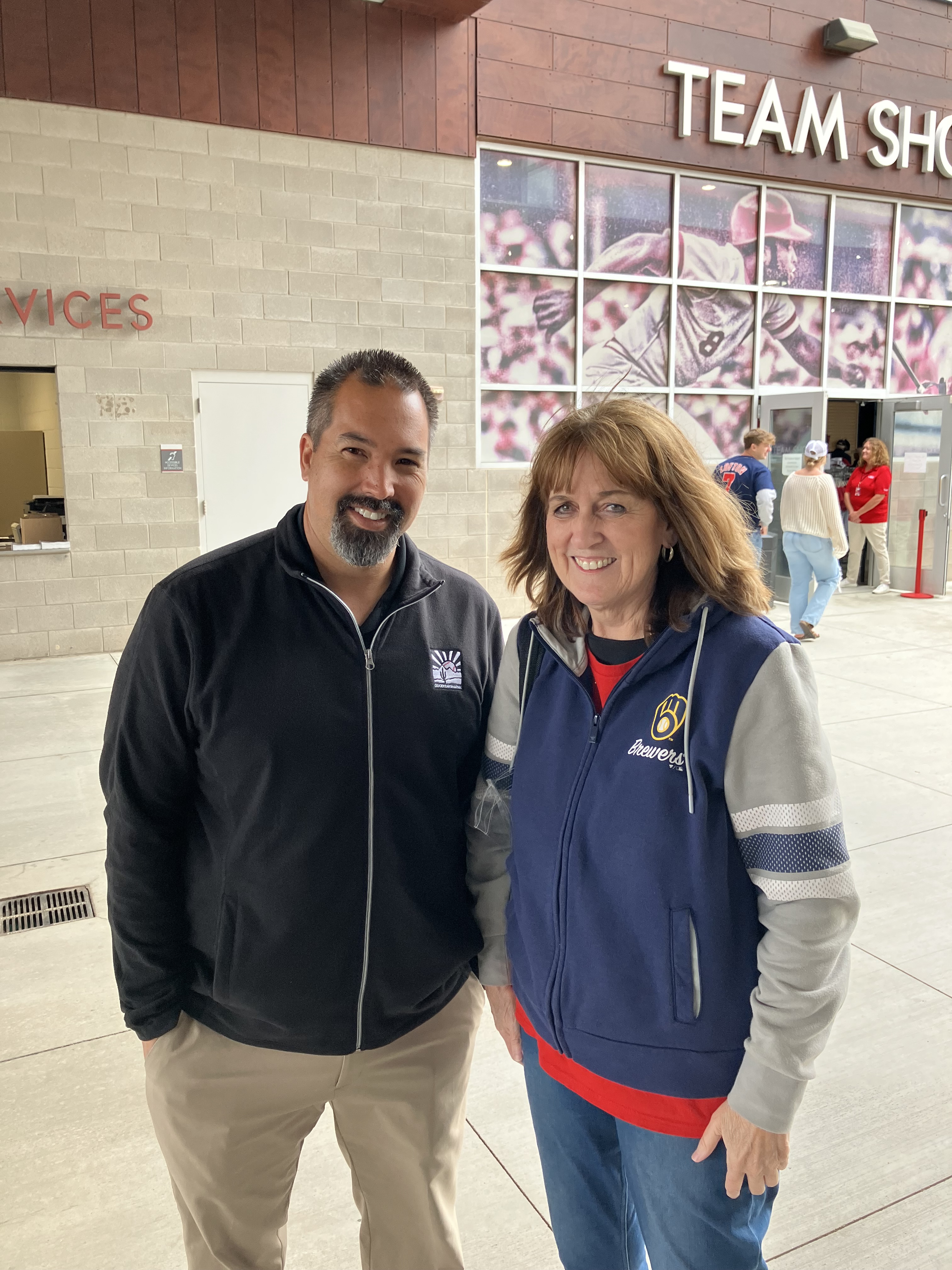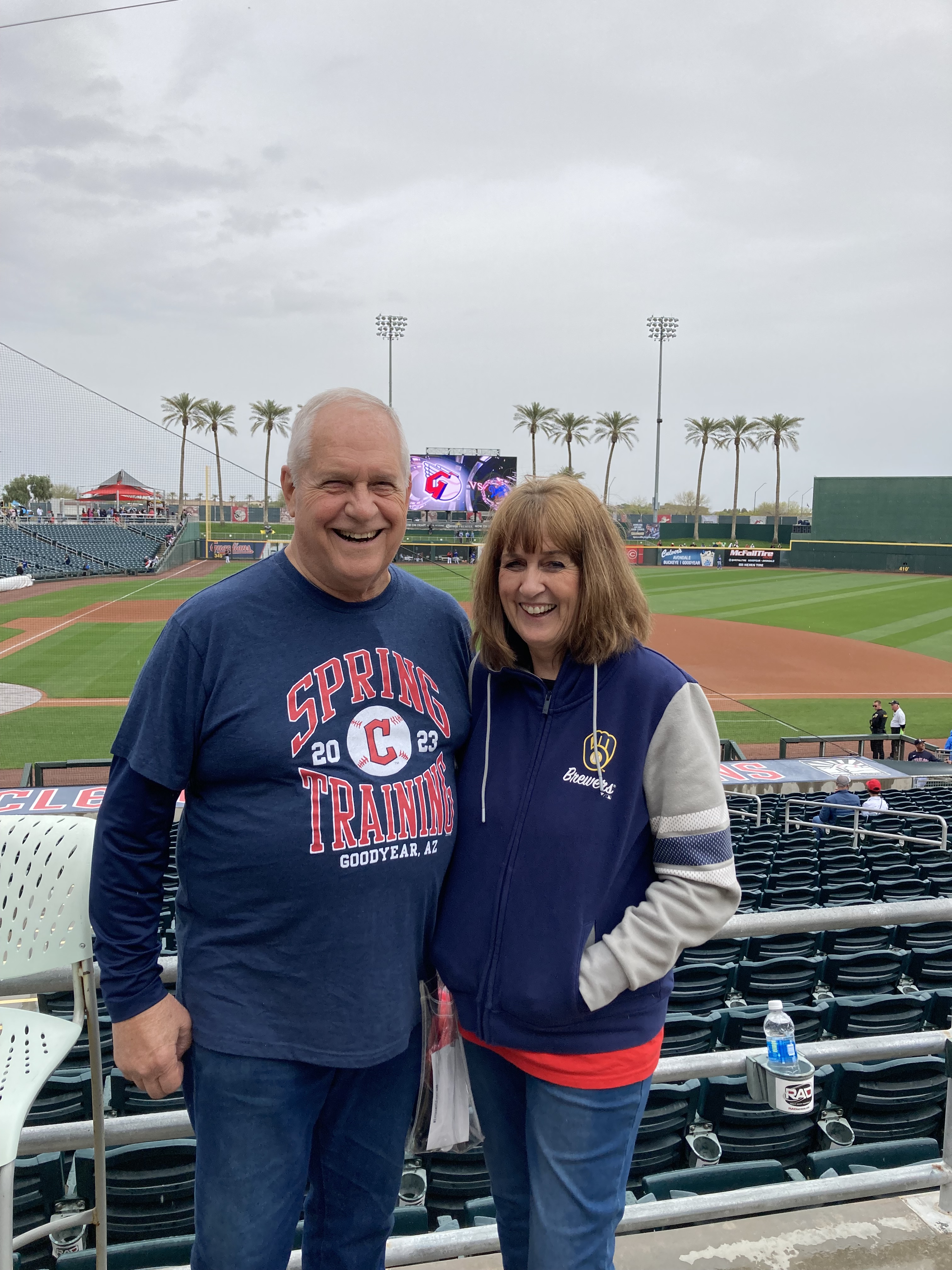 It was a return to Spring Training in March when the weather was supposed to be nicer. Minor leaguers were vying for promotions and most importantly, a celebration of our friend Michele Vassalotti’s performance in the World Baseball Classic was in the making. By taking a flight at oh-dark-thirty and thanks to gaining three hours on a time change, we were at the Brewers complex by mid-morning. Skies were very overcast and according to my weather app, rain was in the forecast. We peeked into the batting cages, then watched players at the practice fields stretching. We finally spotted a familiar frame briskly walking towards us. It was Vassalotti. “I’m pitching in the big field this morning! Come see me!” and off he sauntered. I looked at my watch. We were good for an hour and a half before we needed to head to Goodyear Park for the afternoon game. Within minutes, we were seated with scouts and some family members watching a closed scrimmage of the Brewers. After Michele’s successful inning, we left.