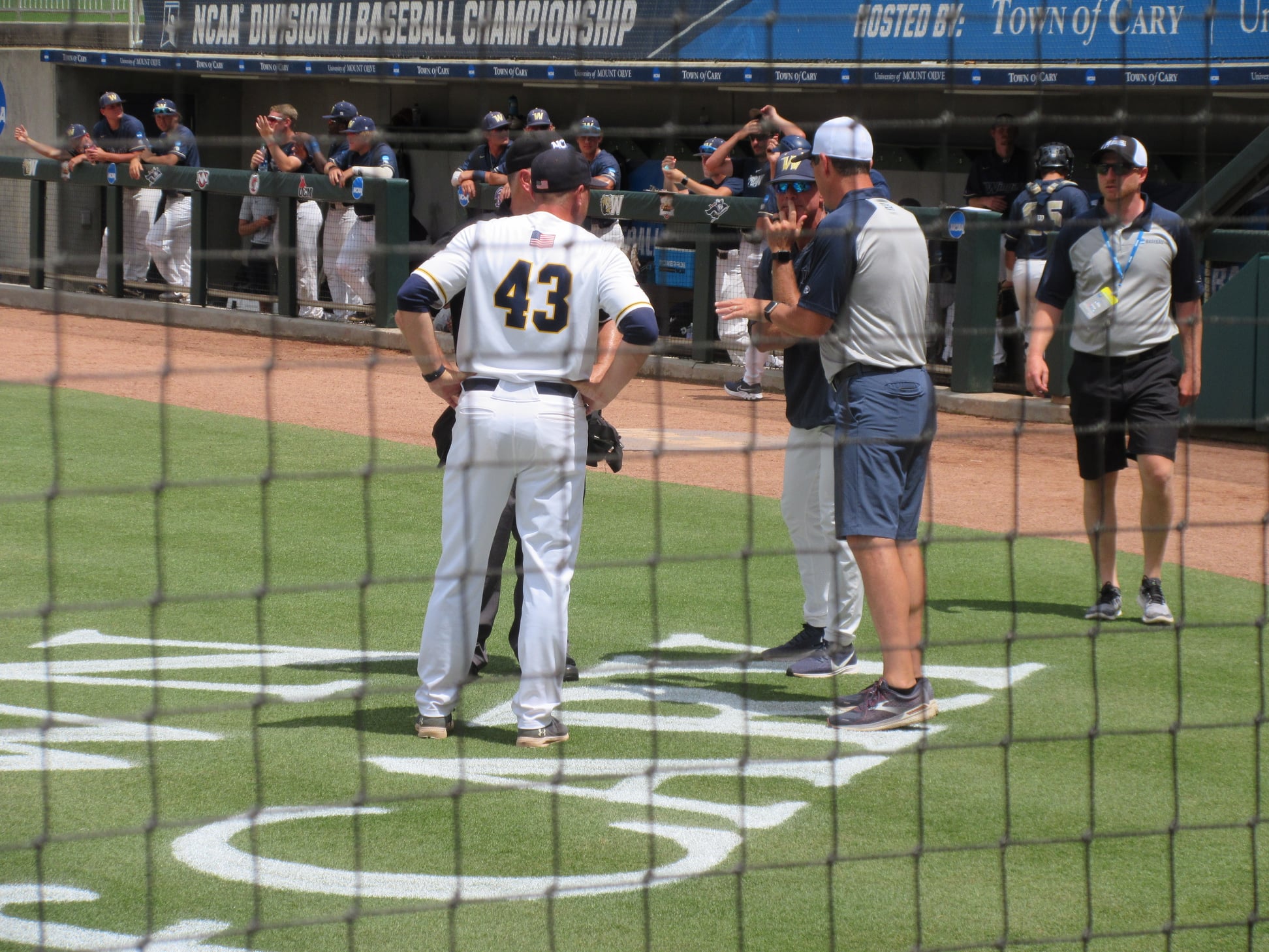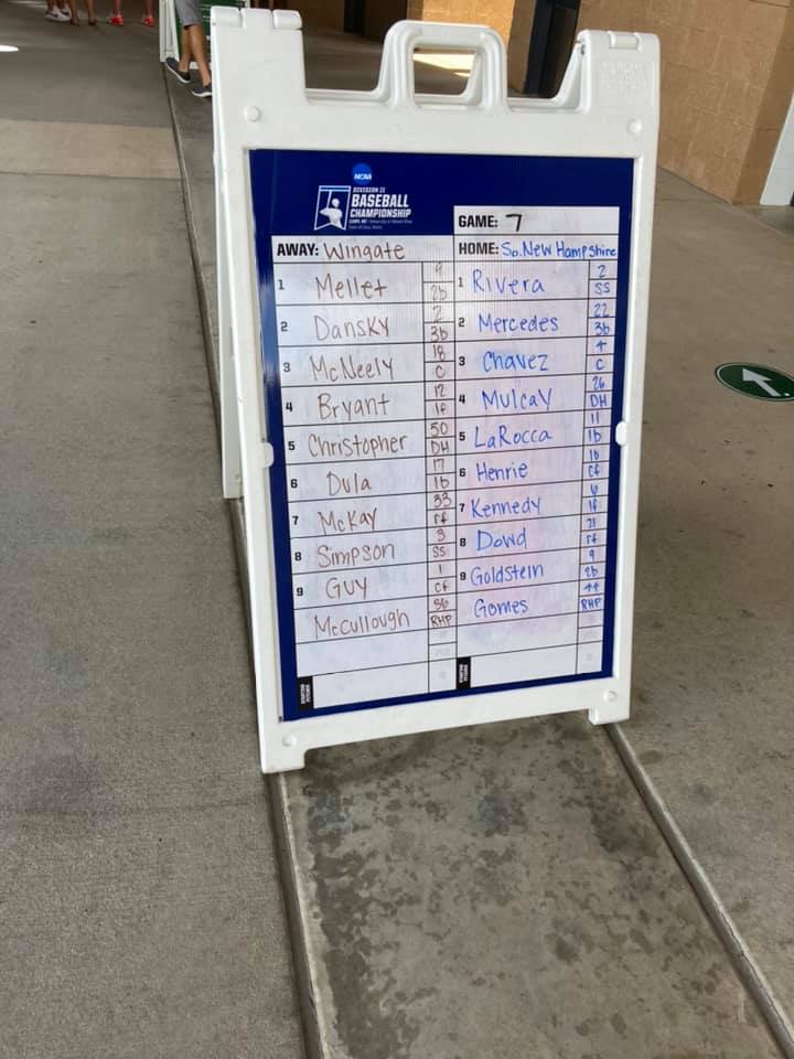 Funny how life throws curve balls and it was only discovered thanks to a rain postponement of our Carolina Mudcats game. Instead of working, I was home watching the sports and heard that in a couple of days, the Division II College Playoffs and Championship would be played in Cary NC, only twenty-five minutes from my home. As I googled the teams playing, I was pleasantly surprised to find that Southern New Hampshire was the number seven seed. I had interviewed their ace Alex Gomes two years ago when he played summer ball in the New England Collegiate Baseball League for the North Adams Steeplecats.