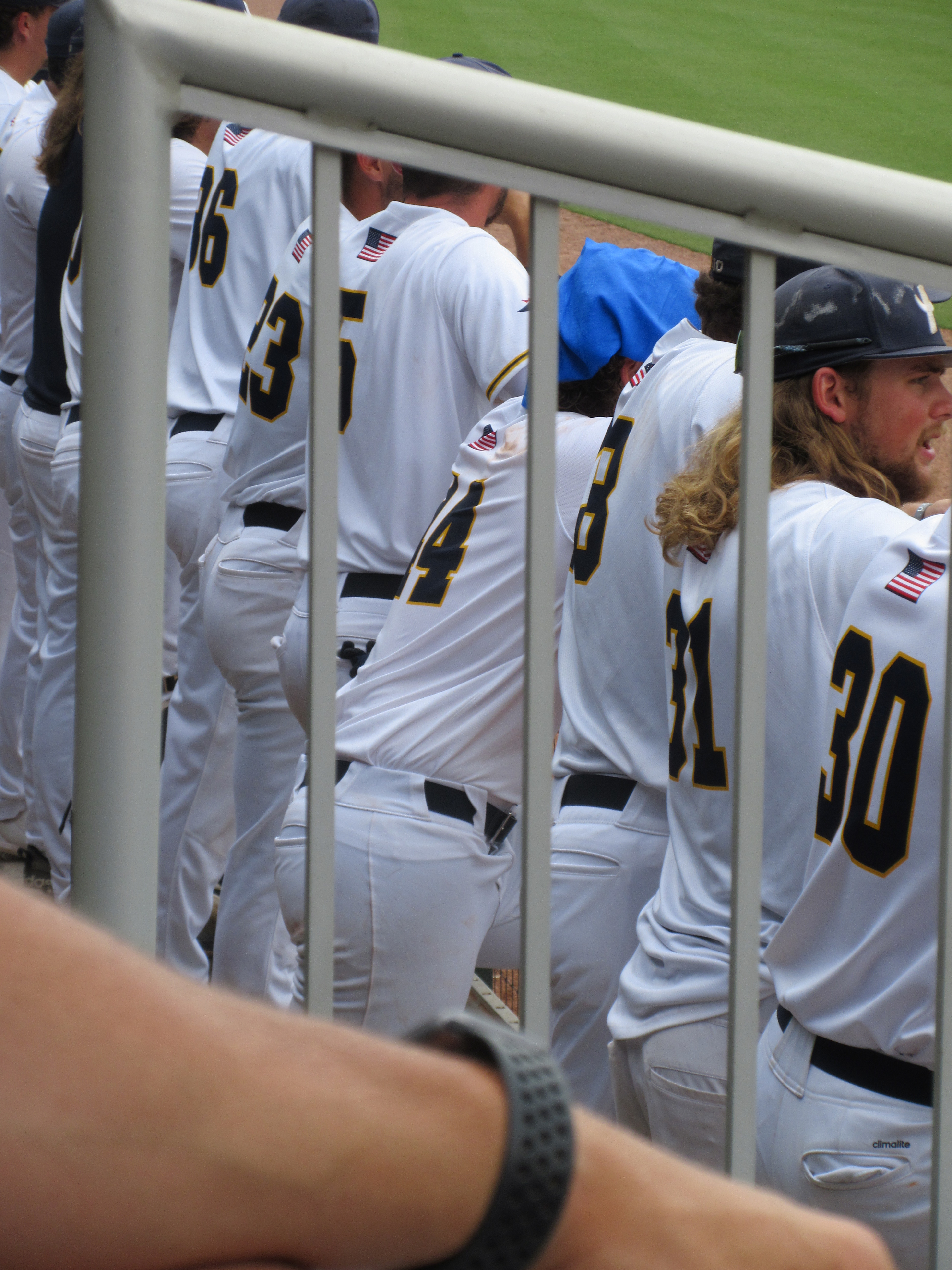 Two days later was Southern New Hampshire facing sixth seed Wingate. Like the Penmen, the Bulldogs had already lost their first game to Angelo State. The winner of this game would move on in the tournament and the season would end for the loser. Wingate had a fan base which had driven the two and half hours from the Charlotte area and appeared to engulf the ballpark. A pretty good contingent of SNH fans, who we cheered with during game one, scattered near the third base area where the Penmen’s dugout was.