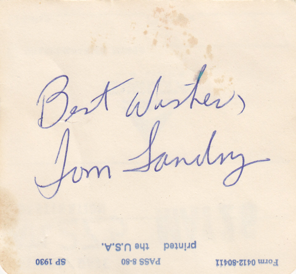 The next drawer contained a white coach Delta boarding card — on the back was Tom Laundry’s autograph. I thought back to the evening I met him. He was seated in an empty boarding area quietly reading a book. There was no doubt when I spotted the fedora — I knew the person who was wearing it. I was in awe of the man who commanded the likes of Roger Staubach, Dandy Don Meredith, Bob Lilly and Randy White. How sad that Jerry Jones’ first action when buying the Cowboys, was firing the legend. That was when I stopped being a Cowboys fan.