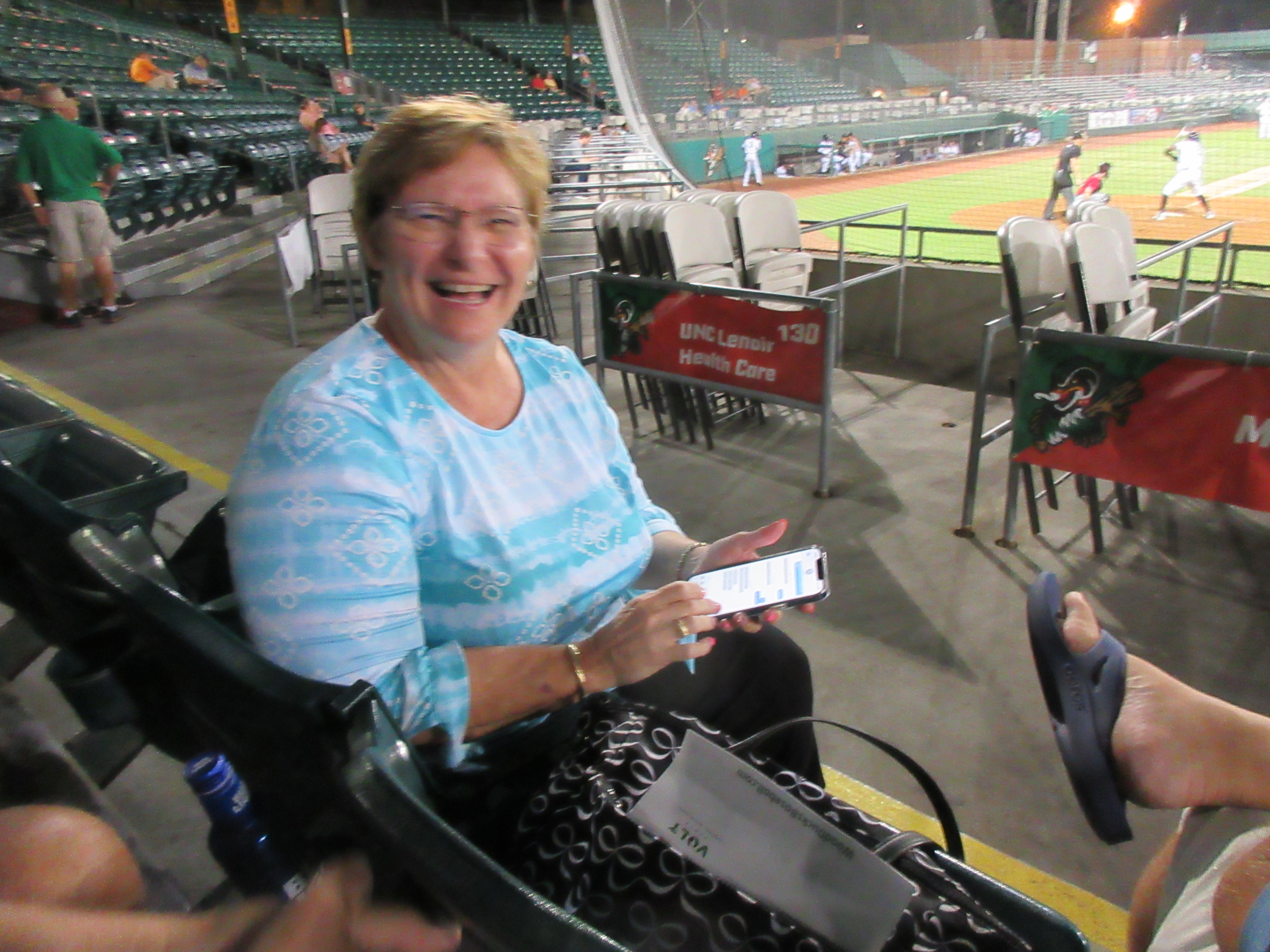In August, University of Louisville sensation Alex Binelas who had been drafted the month before, was promoted from the rookie league to the Mudcats. My husband Rick, who was ushering on the 3rd base side, met his mom Amy first when she asked if she could move down to get pictures of her son playing 3rd base. Amy loved to shop so I saw a lot of her as The Bait Box souvenir shop was across from my stand. One very hot Sunday afternoon, Amy walked by my podium drinking out of a can. “Oh! You must have one of these!! It’s like eating strawberries!!” So off I went to a cart right around the corner. The gal working the cart I had never seen before. “I’d like that drink that tastes like strawberries please.” She pulled a can out of the ice and said, “That will be $6.00.” “Wow, that’s high, but then again, it’s ballpark concessions with French fries almost as much,” I thought to myself. When I got back to my area, I popped the lid. I could smell the strawberries. As I raised the can to my lips, a co-worker yelled, “Oh my God! That’s alco…..” Before she could finish the word, the one swig was spraying back out of my mouth!” Everyone was laughing except me … the retired manager and supervisor of flight attendants!! I was mortified and ran to my boss to tell him what I had done. After the game, I met Amy in the parking lot. She choked in laughter. “Oh! I’m sorry! I thought you knew!” We still laugh about it!