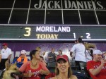 The Morelands have a two-year old son. Mitch wanted him to have a baseball name with a unique spelling so he came up with the name “Crue.” The couple also has two labs. The fox-red named “Sage” is a couch potato. “Judd,” a black lab, is a “duck dog in training” since Mitch’s other sport is Bow Hunting. Mitch has tradition at each game — he nods to the stands — that’s his “hi” to Susannah. Her favorite baseball cities when the wives get to tag along? Chicago and Tampa. Our chat then got cut short as player introductions were streaming over the PA system.