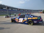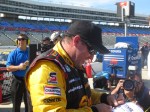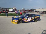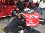 Friday’s fun included watching practices and qualifying. With the purchase of our pit passes, we had a pretty good view as the cars zoomed out of the garage area and onto the track. However, as the day went on, the crowd cloned. Grown men literally knocked over women to get a look at their driver. On tippy-toes, I finally found safe haven and a good view from atop a barricade. Speaking of barricades, one separated me from one of my favs, Brendan Gaughan. “Hey! Brendan!” I shouted. When he saw it was me, he backed up and reached across the barrier giving me a bear hug. “Did you get a picture of my bear hug?” I excitedly asked my husband. “No, I was waiting to take one of Matt’s car. It was then I discovered we had way too many favorites.