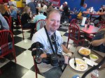 Our seats were in the center of the row and the people on each end were not very accommodating. One time I was forced atop the seat panel and I teetered with uncertainty with each step I took over the jackets, blankets and food on the bleacher. One guy reached over to help me and caught his heel in the bench, then fell into the next row. It’s probably the last time he will ever come to anyone’s rescue. The race itself was rather boring until the last five laps when Brad Keselowski wrecked crowd favorite Jeff Gordon. This led to a brawl on pit row with the two drivers and their crews after the conclusion of the race and our seats were right across from the melee! When I got home, I stayed up until after midnight to watch a rerun of the sports. Alas, the clips with George were axed to cover the fight on pit row.
