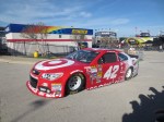 Also, during my garage visit, I met the oldest active driver in NASCAR, Morgan Shepherd. The rough faced seventy-one year old looked discouraged as he climbed out of his #89. Unless there were a couple of wrecks during qualifying, he would not see action in the race. Back at the media center, there was a collective gasp while we were monitoring on TV the practice session as Jimmie Johnson’s car brushed the wall. I bolted out of my chair and back up to track to assess the damage. The champion had dodged a bullet.